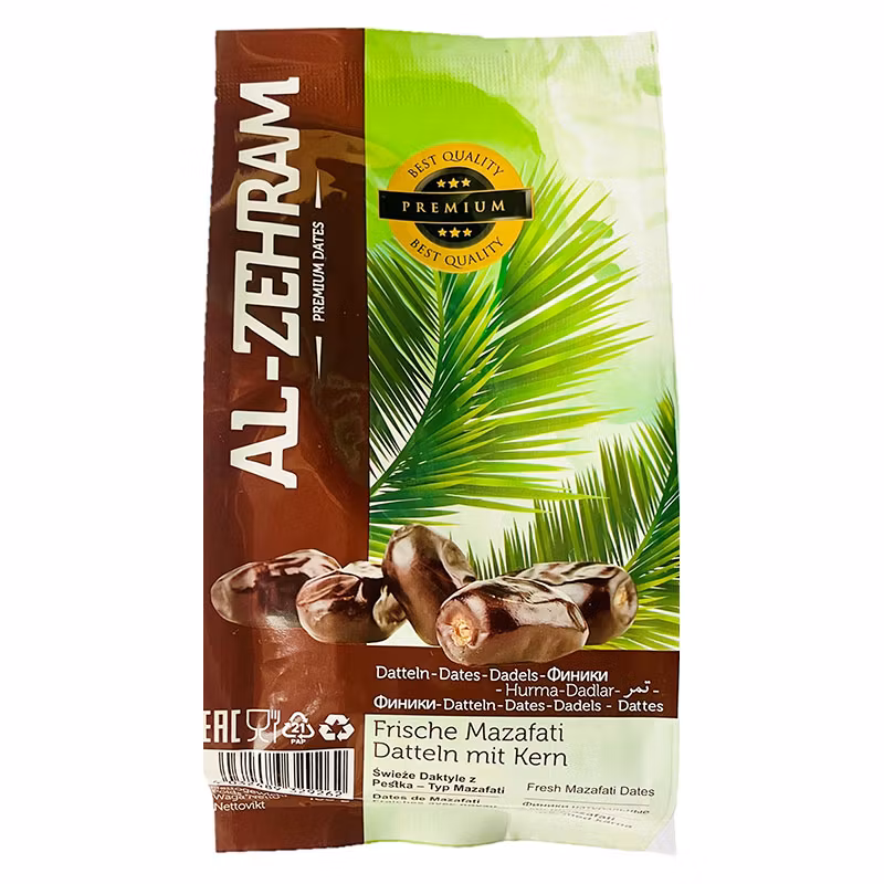 Oplev en skat fra Iran med Al-Zehram Fresh Mazafati dadler. Disse lækre dadler er nøje udvalgt fra de bedste gårde i Iran og giver en smagsoplevelse som ingen anden. Det, der gør disse Mazafati-dadler så specielle, er deres renhed og autentiske smag - de er helt fri for konserveringsmidler og tilsætningsstoffer.