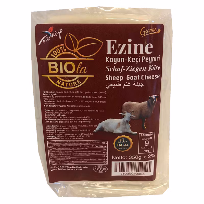 Nyd Biola-Cheese Ezine-ost (Ezine peyniri), en førsteklasses ost fremstillet af gede- og fåremælk fra Ezine-sletten i Tyrkiet. Denne ost fremstilles om foråret og sommeren, når dyrene græsser på de rige urter i regionens unikke flora, herunder timian.