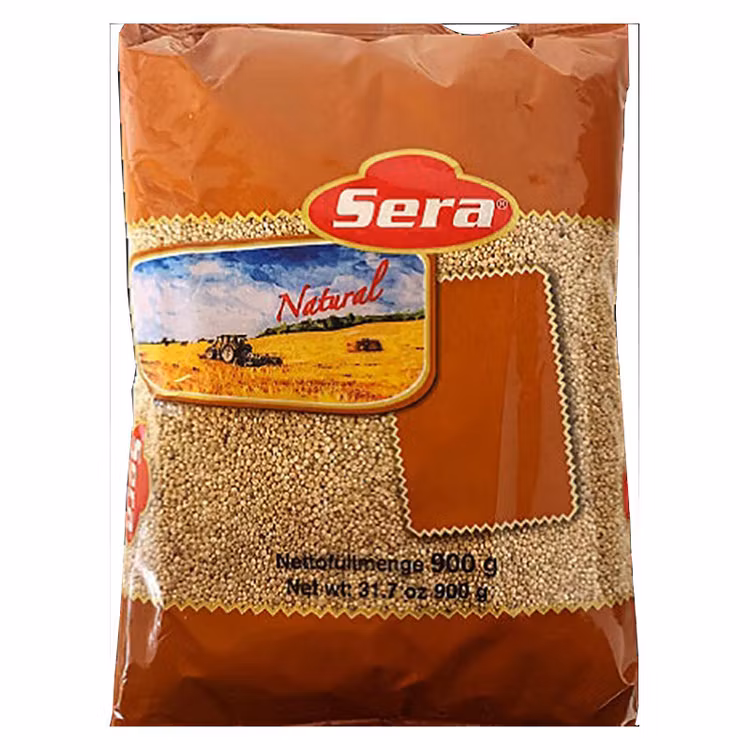 Quinoa, även kallad mjölmålla, är en ört som växer vilt i Sydamerika. Den beskrevs av den tyske botanikern Carl Ludwig Willdenow 1798. Växtens frön är ätliga och anses innehålla en god sammansättning av aminosyror och en hög halt mineraler. De innehåller inte gluten. Toekade Quinoa från Sera. Produkt av Turkiet.