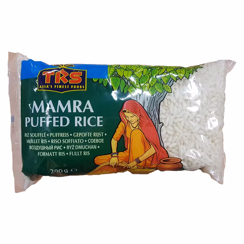 TRS Mamra Puffed Rice er et produkt bestående af puffede ris. Puffede ris er en almindelig ingrediens i indisk madlavning og bruges i forskellige retter og snacks.