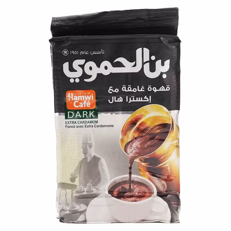 Hamwi Café Dark med Kardemumma är ett fylligt och mättande arabiskt kaffe, mörkrostat för att ge en djup och intensiv smakupplevelse. Den härliga doften och smaken av kardemumma kompletterar kaffets robusta karaktär, vilket skapar en rik och aromatisk dryck som är perfekt för att avnjutas när som helst på dagen.