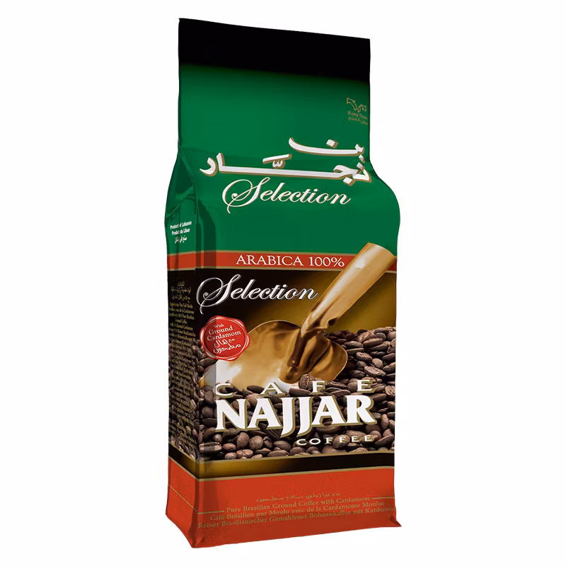 Najjar erbjuder brasilianskt kaffe med kardemumma, en härlig kombination som ger en unik smakupplevelse. Kardemumma är en krydda som ofta används i Mellanöstern för att smaksätta kaffe och ger en distinkt och uppfriskande arom.