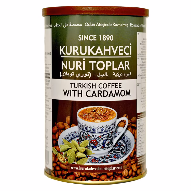Kurukahveci Nuri Toplar Turkiskt Kaffe med Kardemumma är en rik och exotisk kaffeblandning som erbjuder en unik smakupplevelse, djupt förankrad i Turkiska kaffetraditioner. Denna speciella blandning är noggrant rostad på brand och mark i historiska stenkvarnar, vilket ger en oöverträffad rikedom och djup i smaken som är särskilt uppskattad av kaffeälskare.
