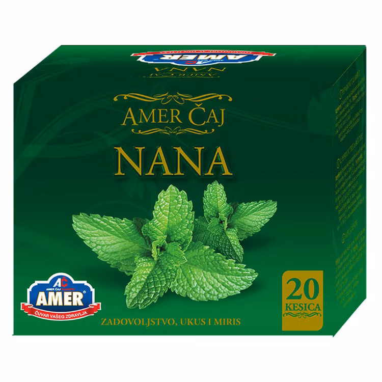 Amer Čaj erbjuder ett myntate som kommer i form av tepåsar och innehåller myntablad. Mynta har många fördelar för matsmältningen och sägs kunna hjälpa till att lindra flera vanliga åkommor.
