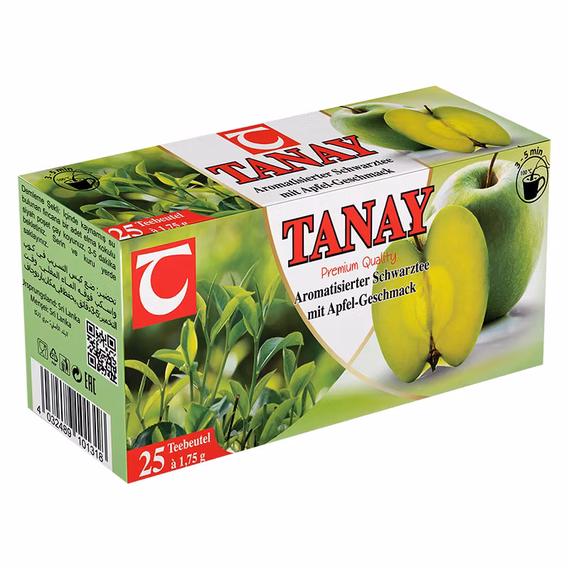 Varje tepåse av Tanay-te förpackas med stor omsorg för att säkerställa att smaken och kvaliteten förblir oöverträffad. Du kan vara säker på att varje kopp är fylld med den fräscha smaken av äpple.