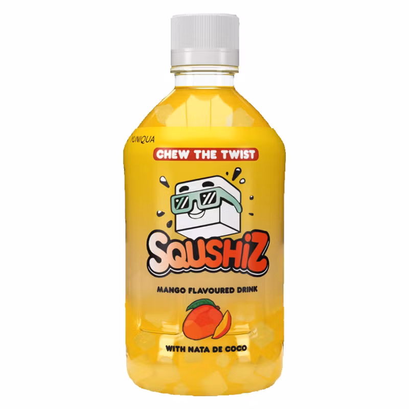 Experience a tropical flavor journey with SQUSHiZ Mango with Nata de Coco - a deliciously refreshing fruit juice that captures the essence of sun-ripened mangoes! This refreshing drink is enriched with nata de coco, small boba-like coconut jelly pieces that add an irresistible chewy texture.