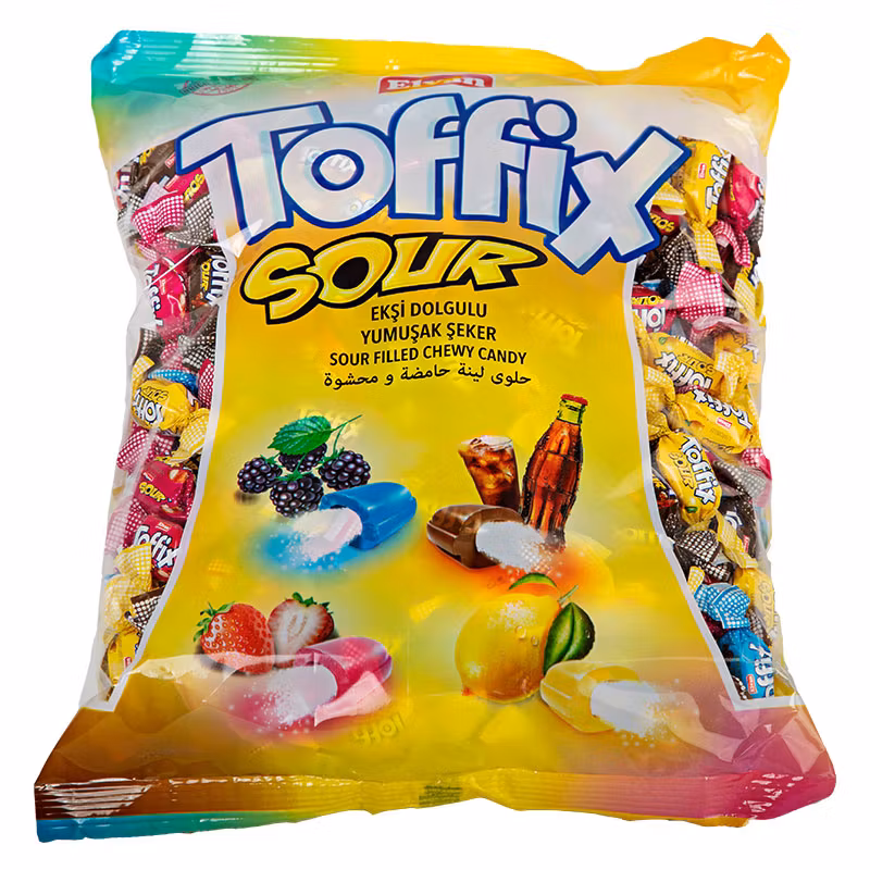 Toffix sour is the perfect choice for those who love sour sweets. Each soft candy offers a combination of different fruit flavors that will give you a taste experience out of the ordinary. Enjoy the tart fruitiness in every bite!