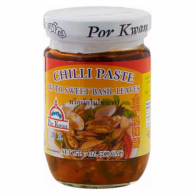 Chili paste with sweet basil from Thailand is a particularly popular sauce in Thai cuisine. This mild chili paste is browned and has a sweet taste of basil. It's perfect to use with seafood, or to liven up all your favorite recipes.