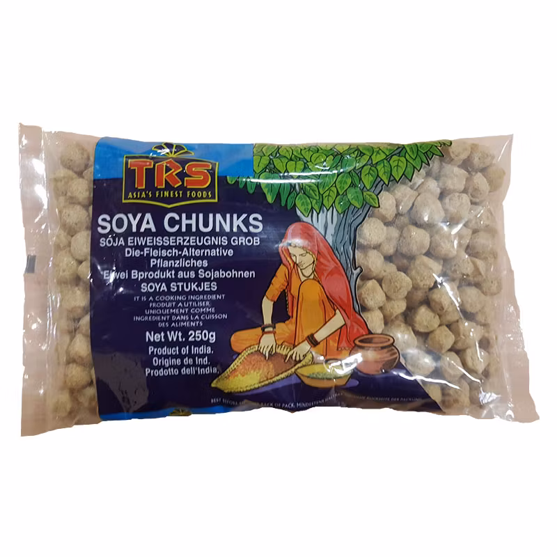 TRS Soya chunks are an excellent option for those looking for vegetarian sources of protein or wanting to replace meat in their dishes. The soya pieces are rich in protein and also contain other nutrients. They can be used in stews, stir-fries, soups or other dishes where you want a meat-like chew resistance and protein-rich ingredient.