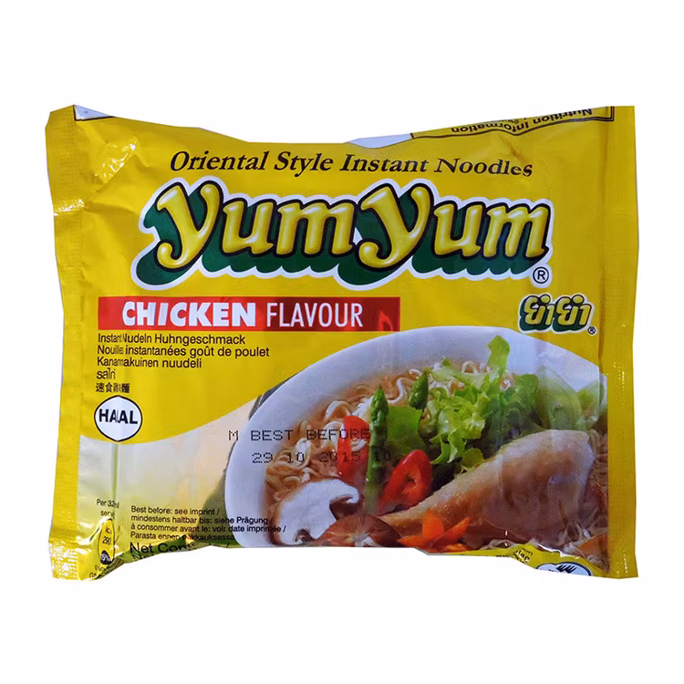 Yum yum Instant noodles with chicken flavor are easy to cook and only take a few minutes to prepare. You can eat it alone or combine it with your favorite vegetables for a complete meal.