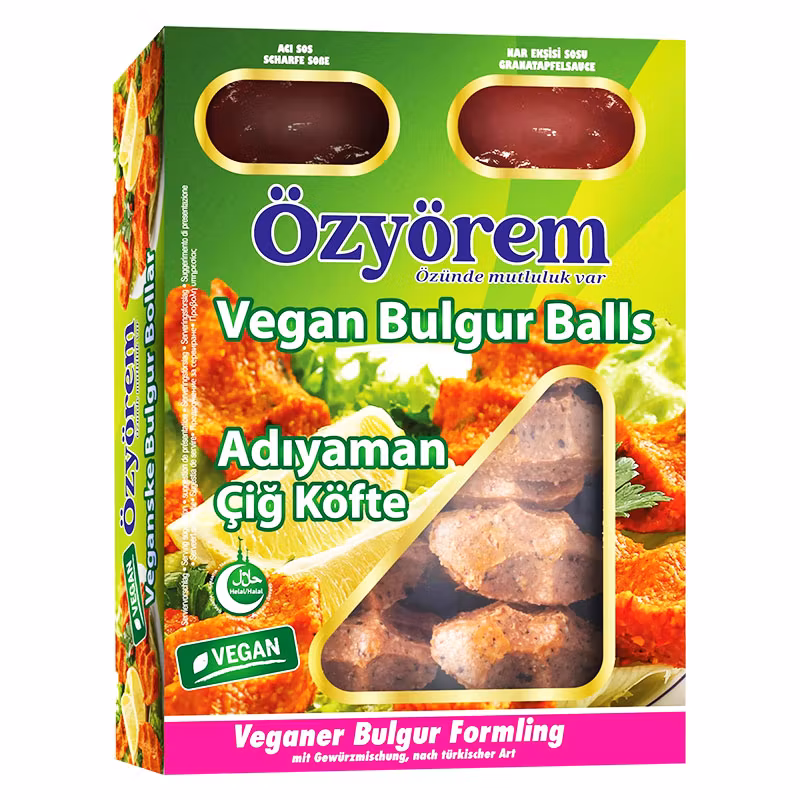 Yörem Cig Köfte är milda, smakrika bulgurbiffar inspirerade av det traditionella turkiska köket. Perfekt för dig som vill njuta av autentiska smaker med en balanserad kryddning. Dessa veganska bulgurbiffar är klara att äta direkt, vilket gör dem idealiska som ett enkelt mellanmål, förrätt eller del av en större måltid.