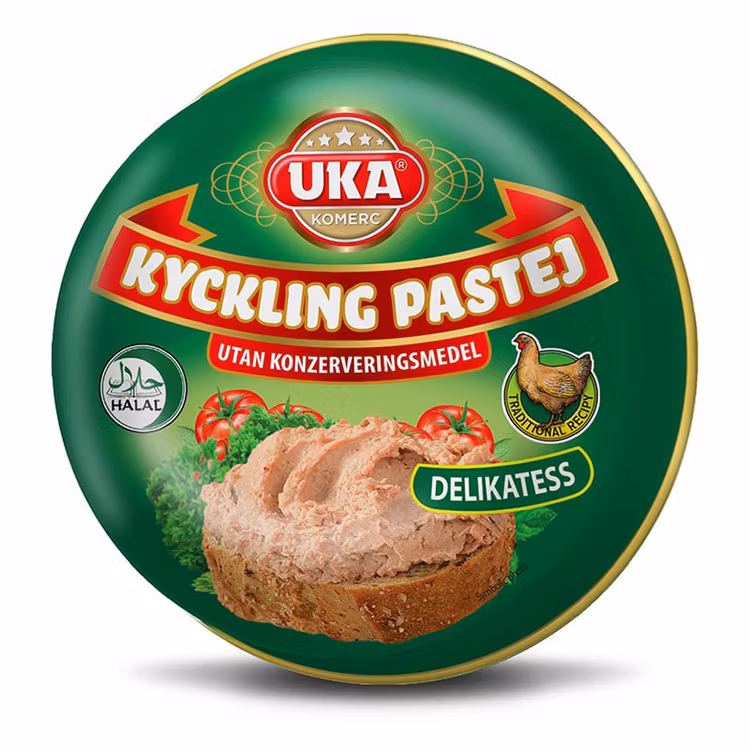 Uka Komerc erbjuder en bredbar delikatess kycklingpastej som är ett smakrikt smörgåspålägg. Denna pastej är gjord av kyckling och har en fantastiskt god smak. Den är perfekt att bre på bröd eller kex för att skapa läckra smörgåsar eller tilltugg.