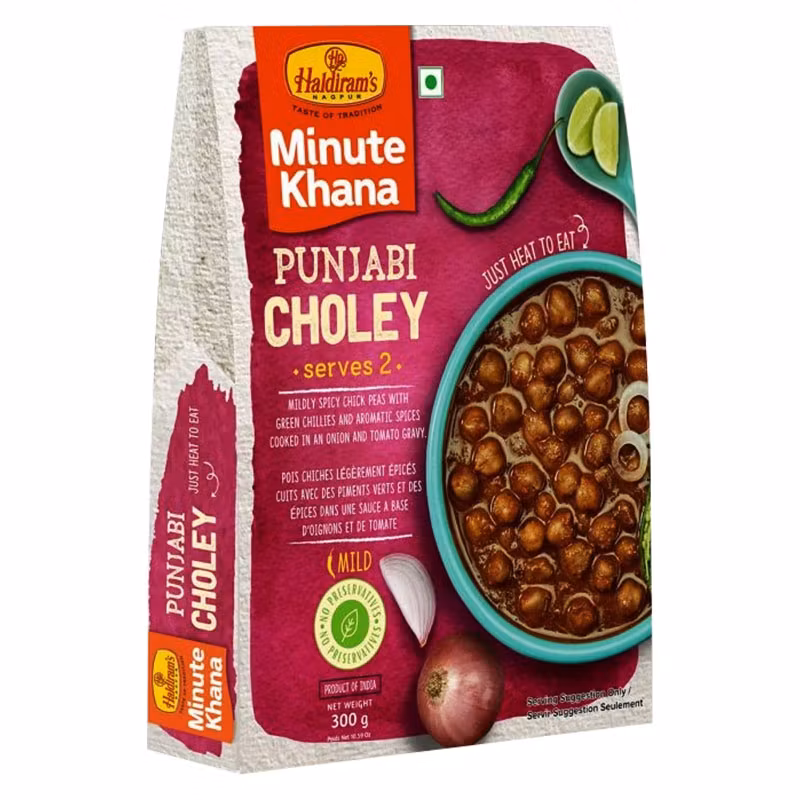Hemligheten ligger i de möra kikärtorna som fått sjuda långsamt i en fyllig, kryddig lök- och tomatsås. Resultatet är en perfekt balans mellan syrlighet, hetta och fyllighet. Haldiram’s "Minute Khana"-serie gör det möjligt att njuta av en autentisk indisk restaurang måltid hemma på bara några minuter – utan krångel, men med all kärlek från det traditionella indiska köket.