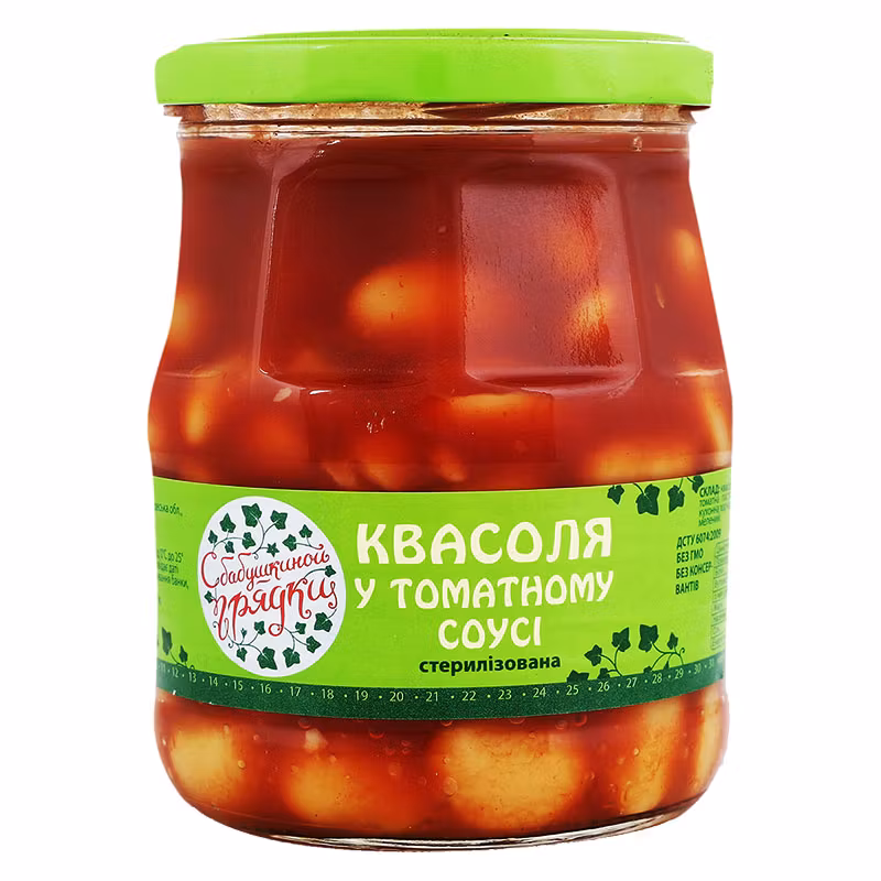Babusina Gryadka Vita bönor i tomatsås är en autentisk ukrainsk favoriträtt – milda vita bönor omslutna i en fyllig, mustig tomatsås med subtil kryddighet. Denna färdiga rätt är perfekt att servera varm till vardagsmiddagen eller kall som ett smakfullt tillbehör. Rik på fibrer och smak, och redo direkt från burken – äkta hemlagat, utan att du behöver laga det!