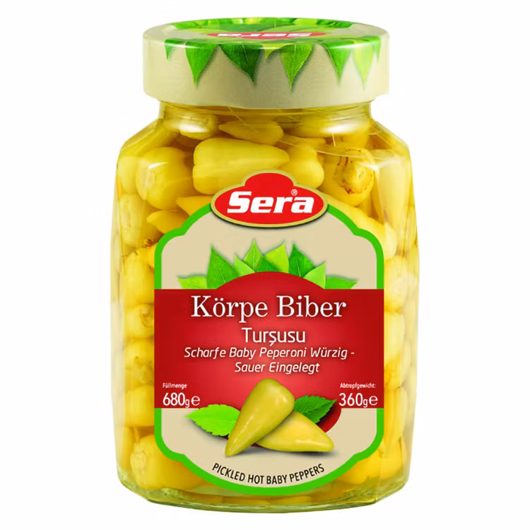 Sera Inlagd Gul Chilipeppar, extra stark, erbjuder en explosion av hetta som är perfekt för den som söker att lägga till en kryddig kick i sina måltider. Dessa noggrant utvalda gula chilipeppar är inlagda i en marinad som intensifierar deras naturliga skärpa och ger en djup och rik smakprofil som förvandlar enkla rätter till extraordinära upplevelser.