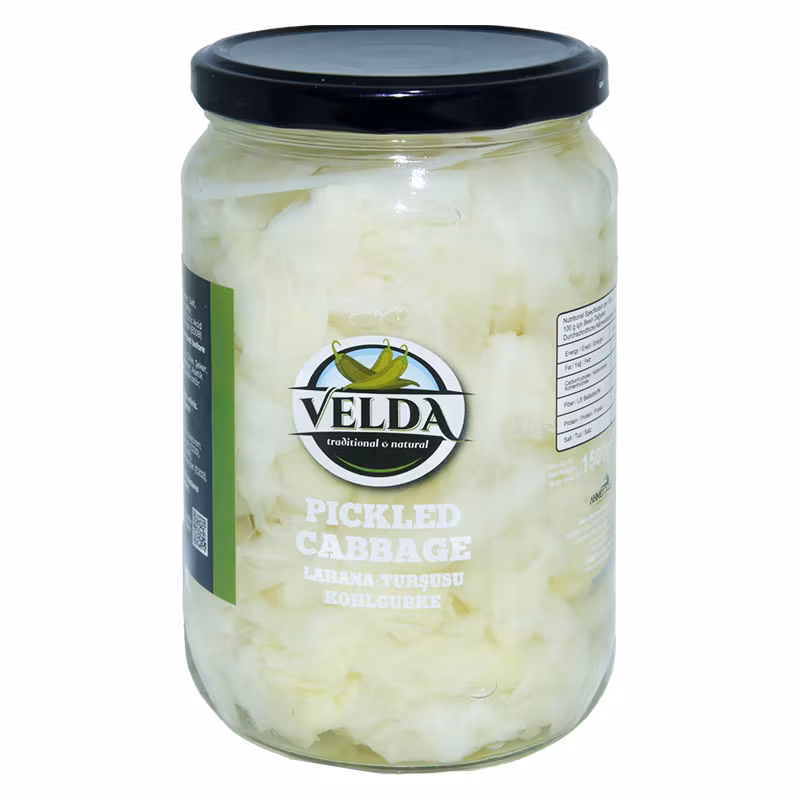 Velda Inlagd Vitkål erbjuder en klassisk och krispig konsistens som är perfekt för att förhöja dina traditionella rätter. Använd denna inlagda vitkål i surkål, som ett fräscht tillskott till sallader, eller som ett smakrikt tillbehör till varma måltider. Velda Inlagd Vitkål är tillverkad enligt traditionella metoder för att ge den autentiska smaken som är älskad i många kulturer.