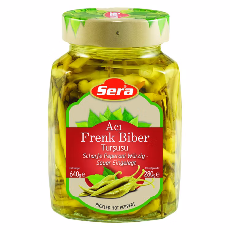 Inlagda Starka Feferoni av Frenk typ erbjuder en explosiv smakupplevelse som är djupt rotad i Medelhavets matkultur. Dessa kryddiga chili-pepparfrukter är kända för sin intensiva hetta och distinkta smak, vilket gör dem till en populär ingrediens i en rad olika kök.