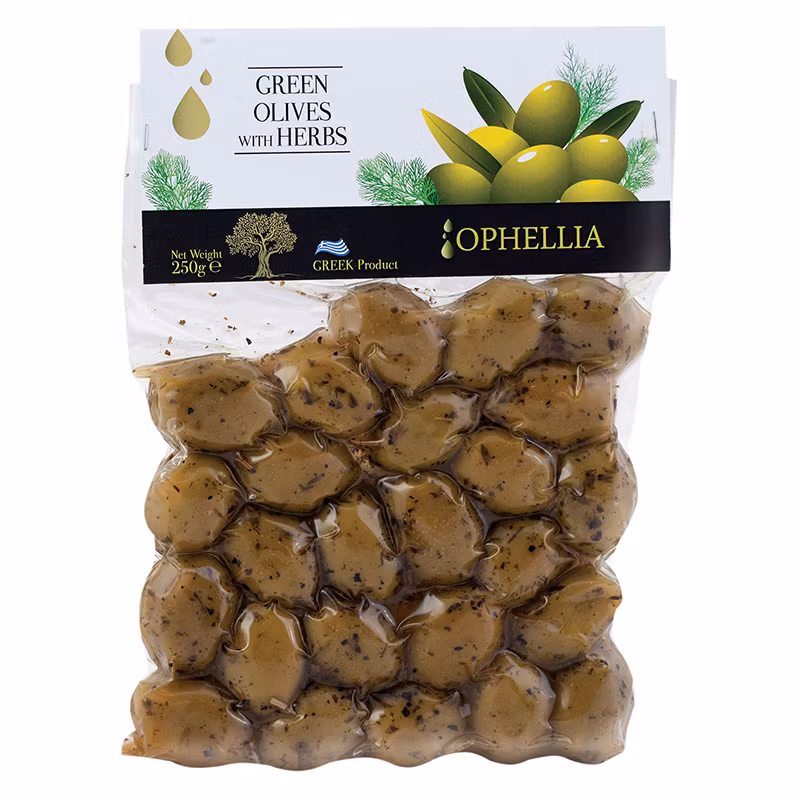 Våra gröna oliver med oregano är en grekisk specialitet som är förpackade i en vakuumpåse. De har en unik smak och konsistens som är helt naturlig och oförfalskad. De har en mild och rund smak med en hint av oregano som ger en fräsch twist.