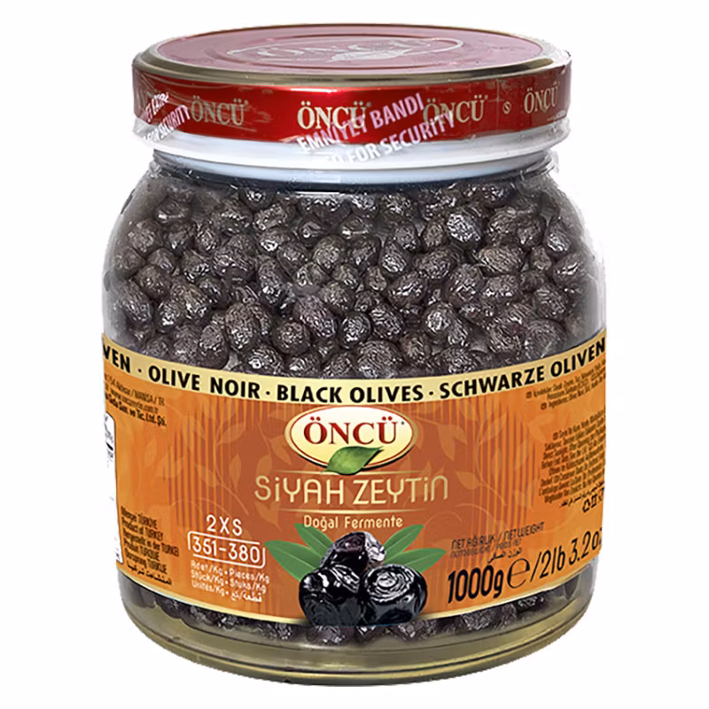 Öncu Svarta Oliver 2XS är små, smakrika svarta oliver som bjuder på en autentisk smakupplevelse från Medelhavsområdet. Deras lilla storlek och intensivt rika smak gör dem till perfekta tillskott i sallader, som tilltugg, eller som en del av en traditionell meze.