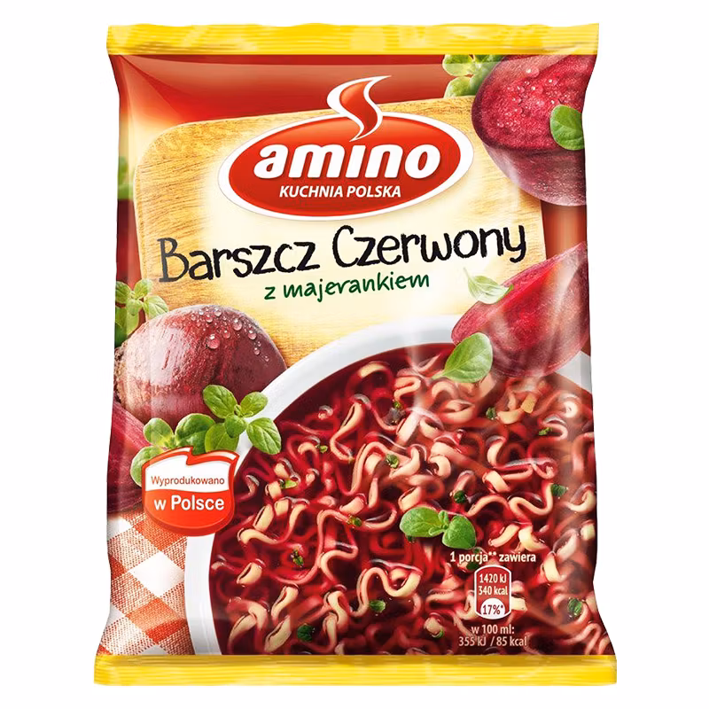 Barszcz czerwony är mycket enkel att tillaga. Du behöver bara lägga nudlarna och innehållet i påsen i en skål, hälla över 400 ml hett vatten och blanda noggrant. Låt stå i 3-5 minuter och servera sedan den varma soppan.