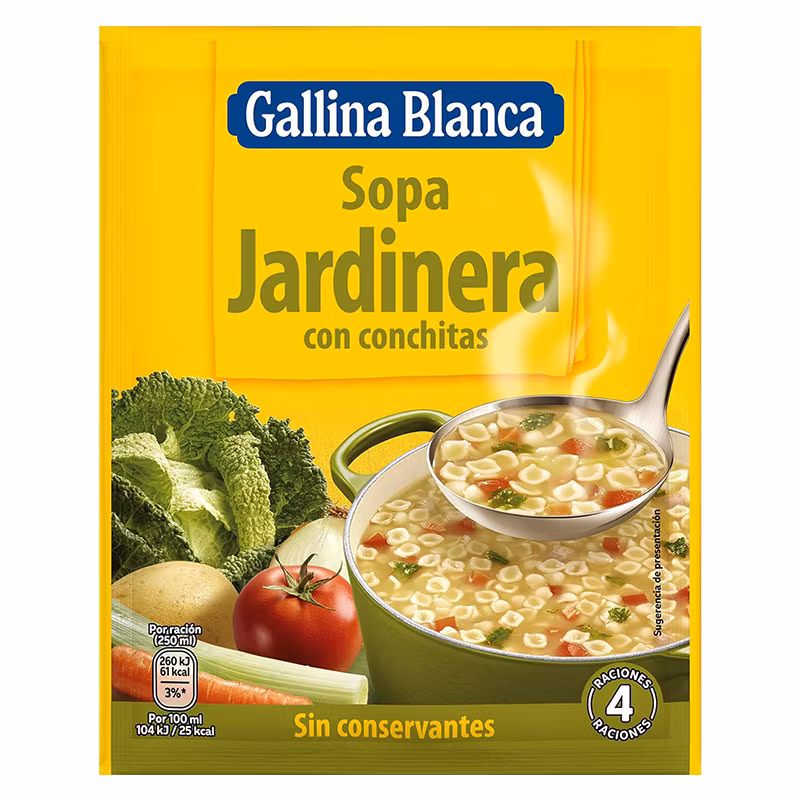 Gallina Blanca är känt för sina högkvalitativa soppor, och deras Grönsakssoppa med Pasta, eller "Jardinera con conchitas", är en perfekt kombination av god smak och näring. Denna soppa är ett utmärkt val för att njuta av en välsmakande och balanserad måltid.
