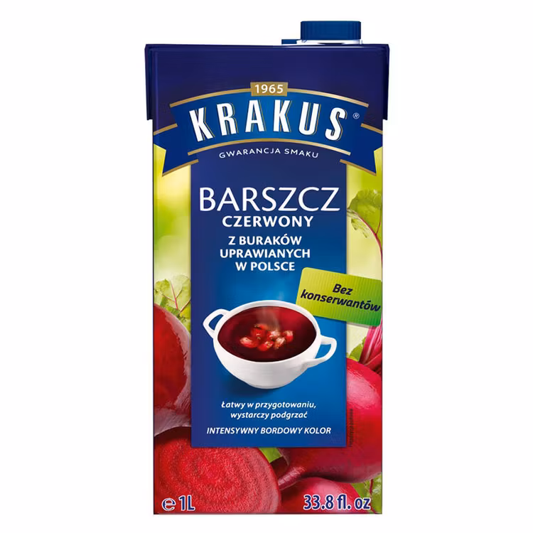 Dyk in i den rika och smakfulla världen av Rödbetssoppa - barszcz - borsjtj, en traditionell polsk soppa som är en stapelvara i många hem och speciellt under julafton. Krakus borsjtj, som är baserad på koncentrerad rödbetasaft utan konserveringsmedel, är en utsökt soppa som du förtjänar inte bara vid speciella tillfällen, utan även som en del av din dagliga kost.