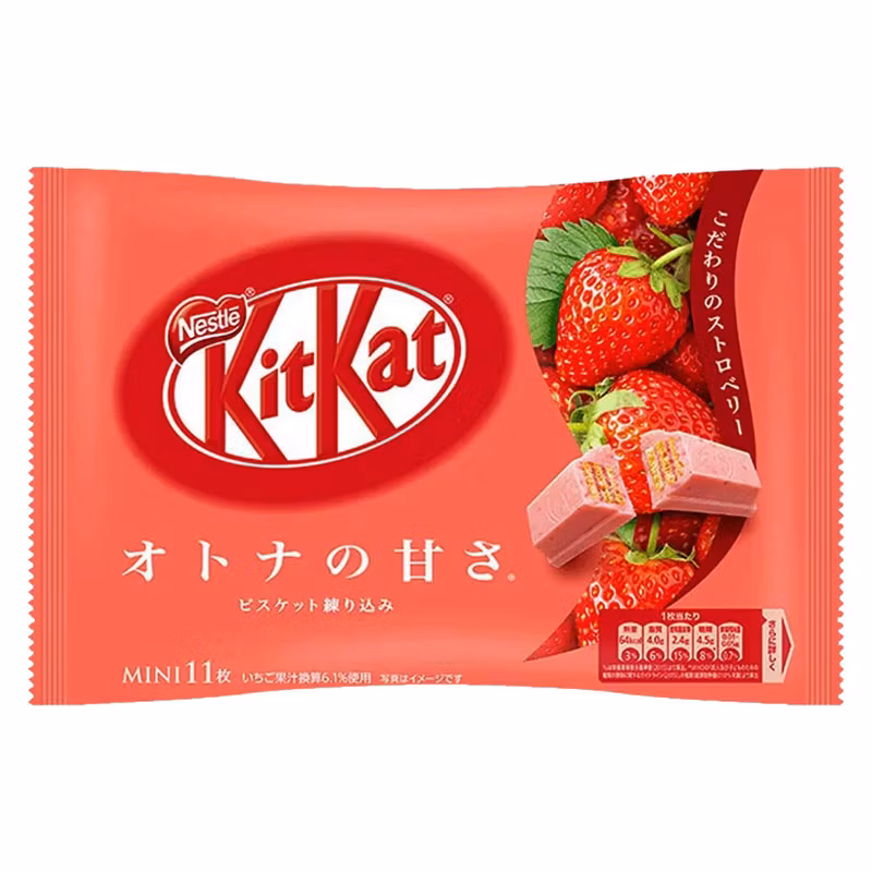 KitKat Strawberry vie klassisen KitKat-kokemuksen uusiin ulottuvuuksiin raikkaan ja makean mansikan maun ansiosta. Jokainen suupala koostuu rapeista kekseistä, jotka on päällystetty herkullisella mansikkakuorrutteella, joka tarjoaa täydellisen tasapainon makean ja happaman välillä.