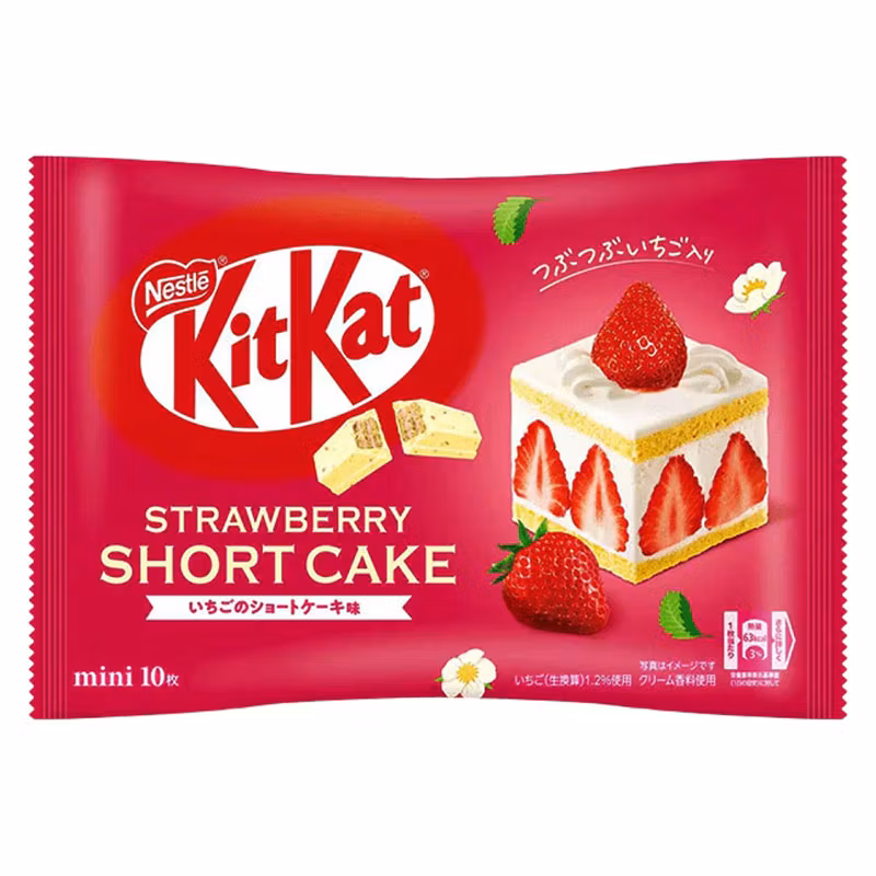 Tee makumatka kesäpuutarhaan KitKat Mini Strawberry Short Cake 116 g:n kanssa. Tässä herkullisessa herkussa yhdistyvät KitKat-keksin klassinen rapea keksi ja virkistävä mansikkainen shortcake. Kermaisen valkosuklaan päällystetty ja täytetty makeilla mansikanpaloilla ja murenevalla kakulla, jokainen suupala luo sensaatiomaisen makuelämyksen.