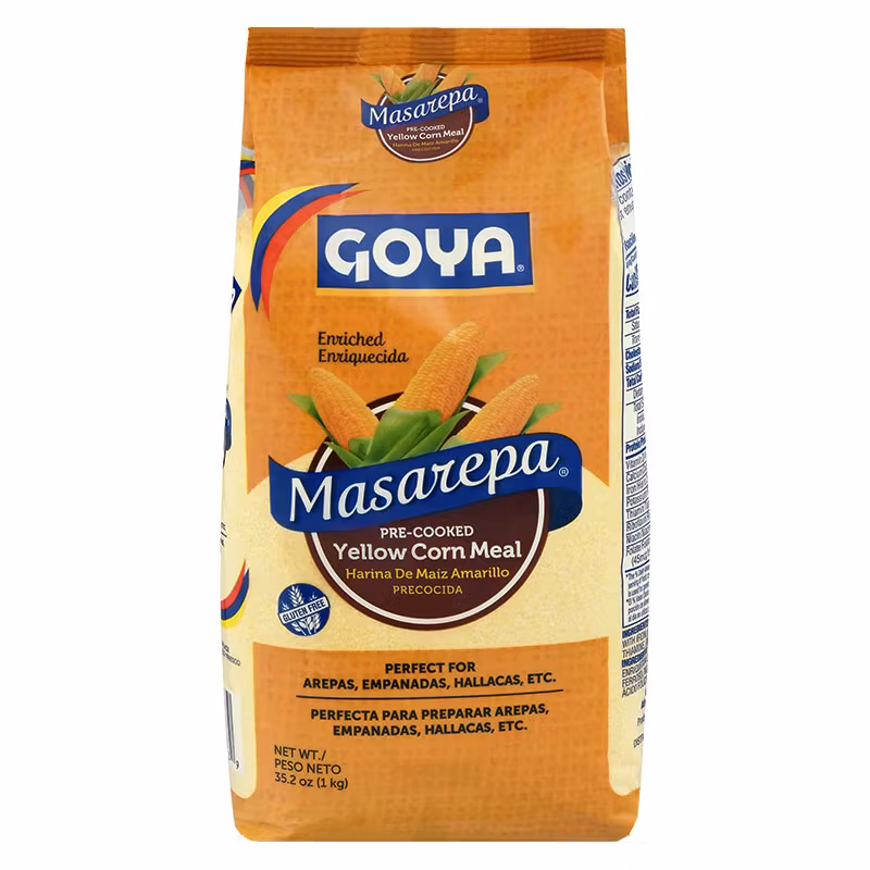 Anna ruoanlaittoon latinoväri Goya Yellow Cornmeal Masarepan (Masarepa Amarillo) avulla. Tilaa pakkaus jo tänään ja anna luovuutesi virrata tämän monipuolisen ja herkullisen maissijauhon avulla Goyalta – luotetulta brändiltäsi aitojen latinalaisamerikkalaisten tuotteiden kanssa. Anna meidän viedä sinut samalta tehtaalta pöytään ja nauttia latinalaisamerikkalaisen ruoanlaiton aidosta mausta.