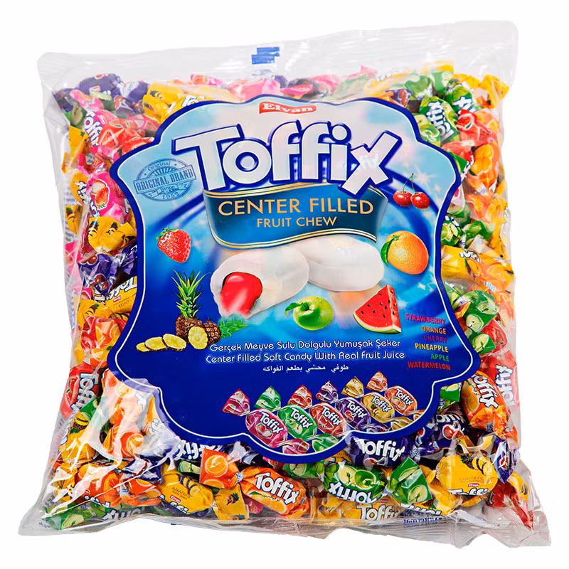 Förnya ditt godisskåp med de härliga och fruktiga Elvan Toffix, nu tillgängliga för onlinebeställning på etnomat.se. Denna färgglada och smakfulla godiskollektion är en fest för både ögat och smaklökarna, med en variation av fruktsmaker som jordgubb, körsbär, apelsin och vattenmelon. Varje bit av Elvan Toffix är en explosion av söt, fruktig glädje som garanterat kommer att förgylla din dag.