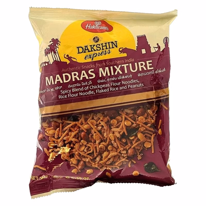 Haldiram's är känt för sin högkvalitativa mat och deras Madras Mixture är inget undantag. Varje ingrediens är noggrant utvald och tillredd för att ge dig en smakupplevelse utöver det vanliga.