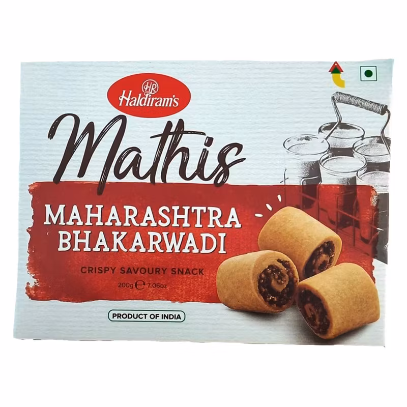 Haldiram's Mathis Maharashtra Bhakarwadi är ett indiskt krispigt och kryddigt snack.