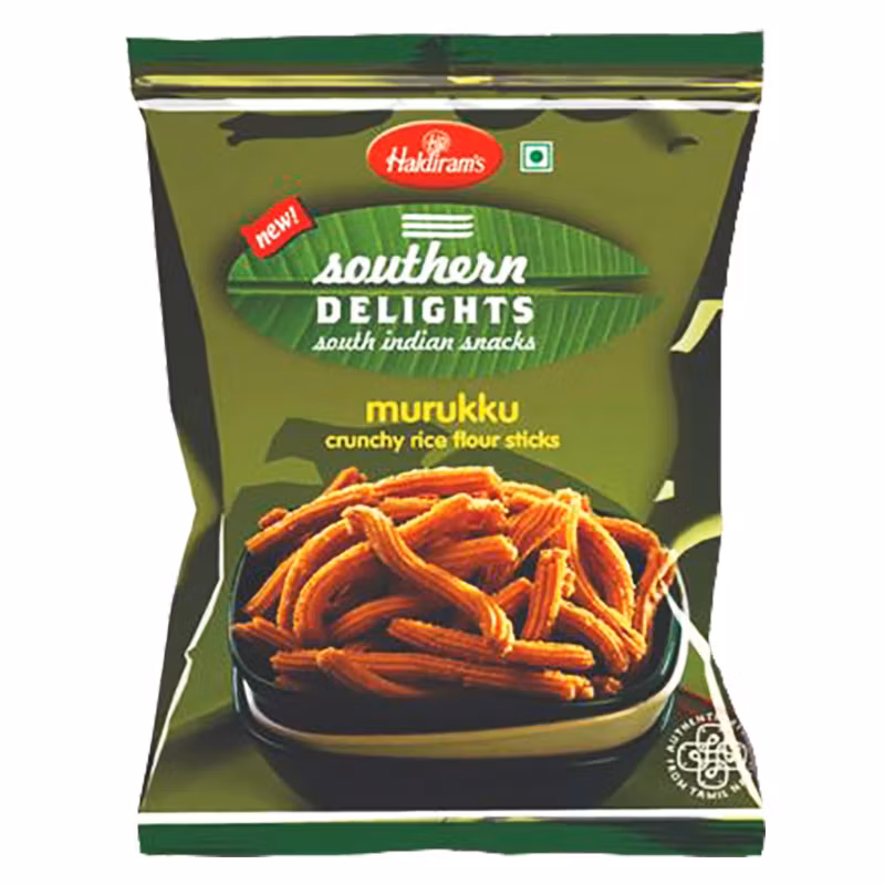 Haldiram's Murukku snacks är ännu ett populärt snacksalternativ från det indiska varumärket Haldiram's. Murukku är ett smakrikt och krispigt snacks som traditionellt tillverkas av rismjöl och kryddas med olika kryddor och smaksättningar.