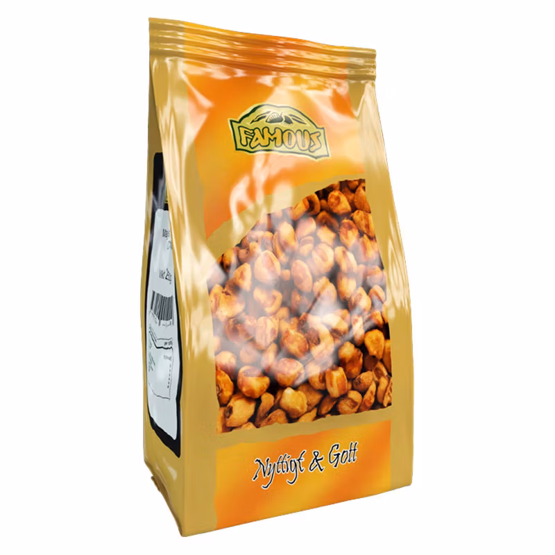 Famous Majs Jumbo är det ultimata valet för dig som älskar knapriga och smakrika snacks. Dessa jumbo majskorn har rostats till perfektion och smaksatts med den optimala mängden salt för att ge dig en oemotståndlig smakupplevelse.