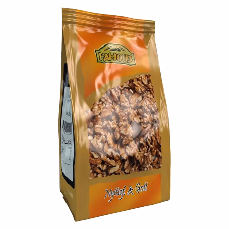 Våra Famous Skalade Valnötter från USA är en äkta delikatess. Denna nötkärna har befriats från sitt skal för att ge dig ren njutning i varje tugga. Med sin milda och krämiga smak har dessa valnötter allt du kan önska från en naturlig hälsosnack.