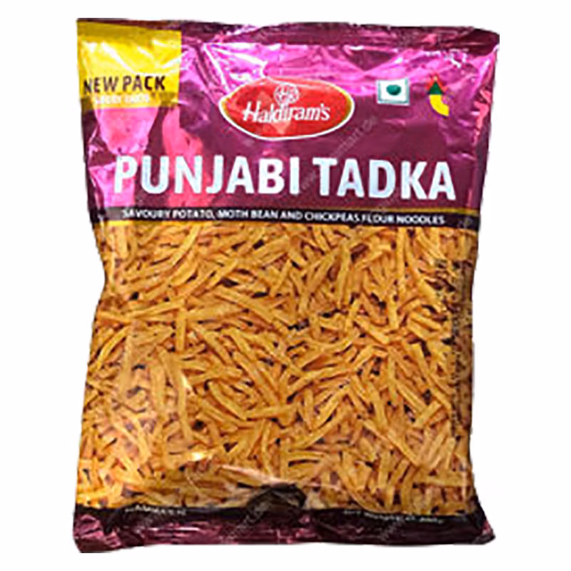 Haldiram's Punjabi Tadka snacks är en populär indisk snacksprodukt som tillverkas av Haldiram's, ett känt varumärke inom indisk mat. Punjabi Tadka-snacksen består av salta nudlar gjorda på potatis, bönor och kikärtor. De är kända för sin krispighet och smakrika kryddblandning som ger en autentisk smak av Punjab i norra Indien.