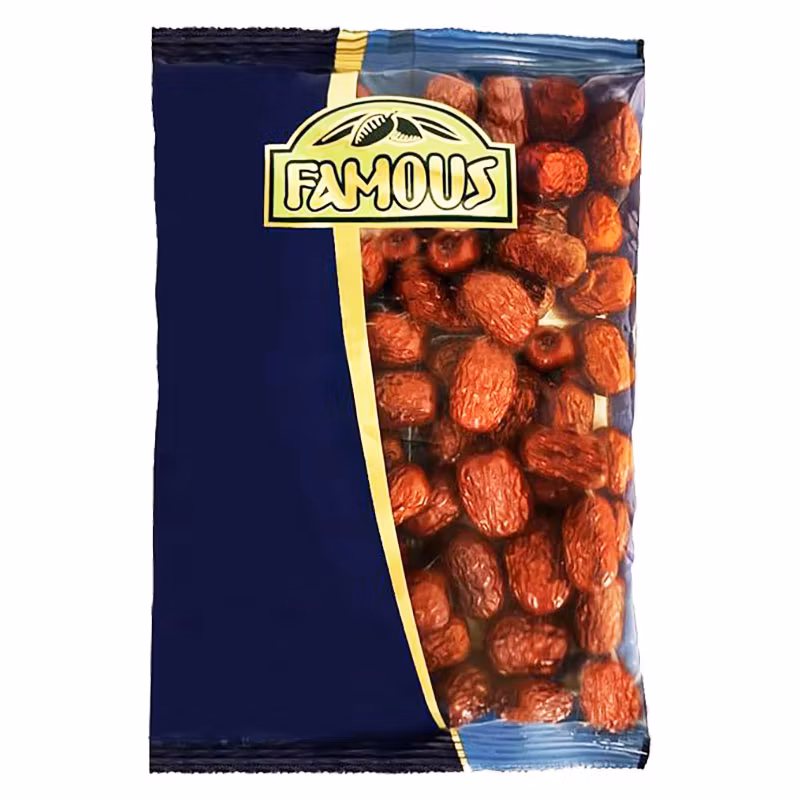 Famous torkade jujubär är en delikatess fylld med naturlig sötma och näring. Jujubär, även kallad "röda dadlar" i Asien, är kända för sina hälsofördelar och används ofta i traditionell medicin. Bären har en mild, söt smak med en lätt syrlighet och en mjuk, seg konsistens som gör dem perfekta som ett hälsosamt snacks, ingrediens i te, eller som en tillsats i bakverk och desserter.
