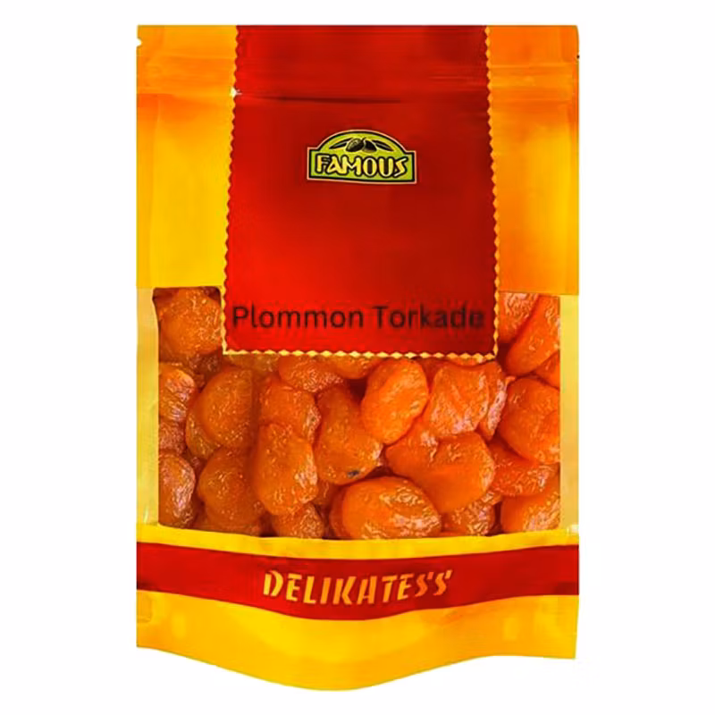 Famous Torkade Plommon är ett hälsosamt och smakrikt mellanmål, fyllt med naturlig sötma och rik på fibrer. Dessa plommon är skonsamt torkade för att bevara sin saftighet och näringsinnehåll.