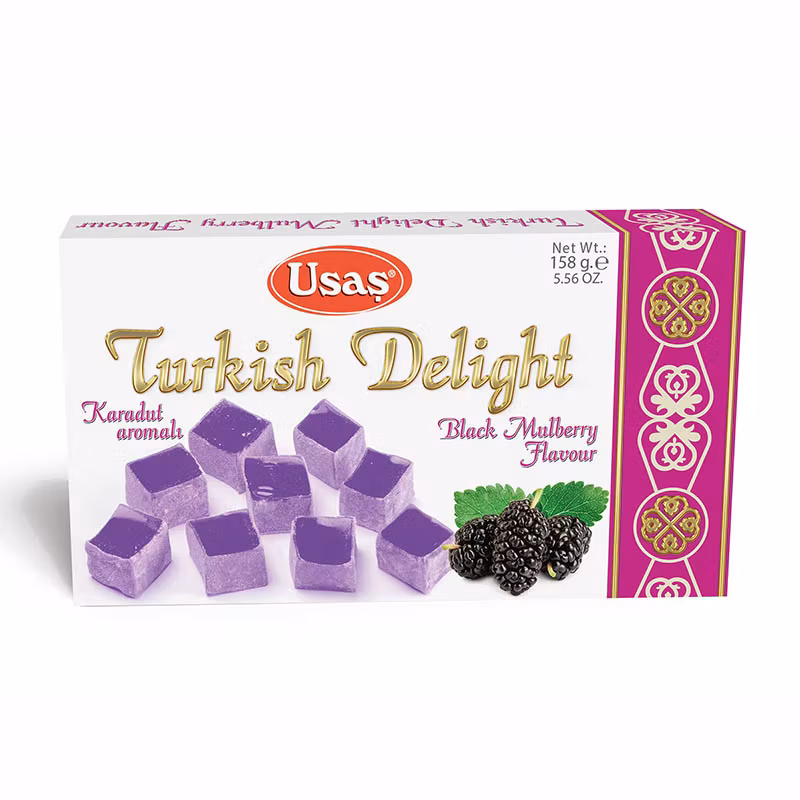 Turkish Delight, med sin långa och rika historia i Turkiet, har varit en omtyckt delikatess i århundraden. Svart mullbär, som anses vara en symbol för välstånd och lycka i den turkiska kulturen, gör denna variant av Turkish Delight ännu mer speciell. Njut av den som en utsökt godisbit, som dessert, eller servera den tillsammans med kaffe eller te för att förhöja smakupplevelsen.