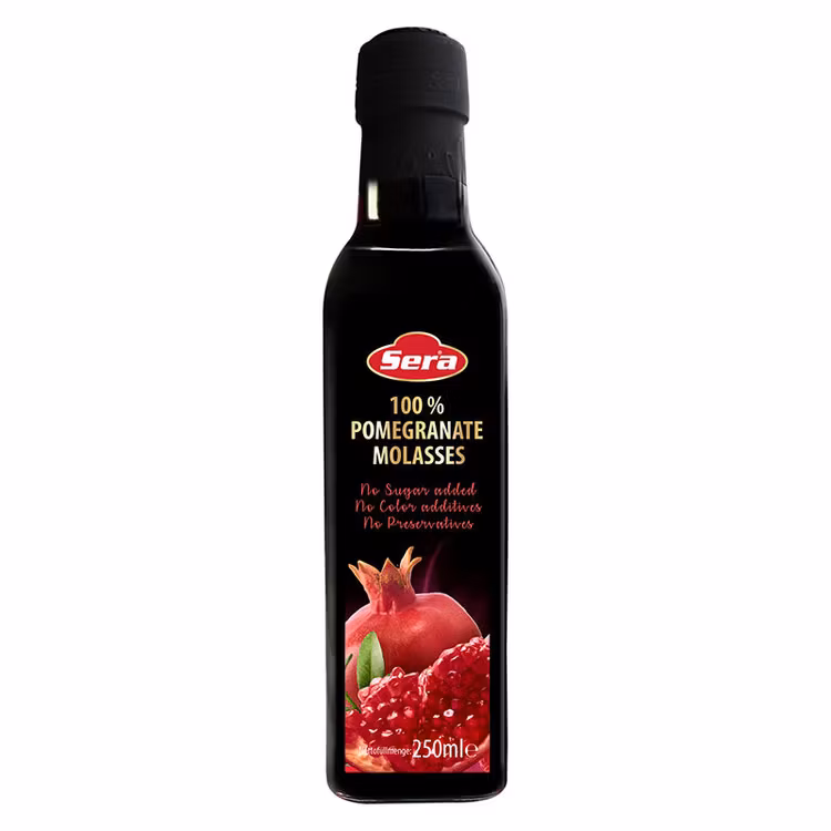 Upplev den utsökta och mångsidiga Sera Granatäppelsås - 100% Frukt. Denna premium granatäpplesirap, gjord av 100% ren granatäpple, är en kulinarisk skatt som tillför en rik och sofistikerad smak till dina maträtter.