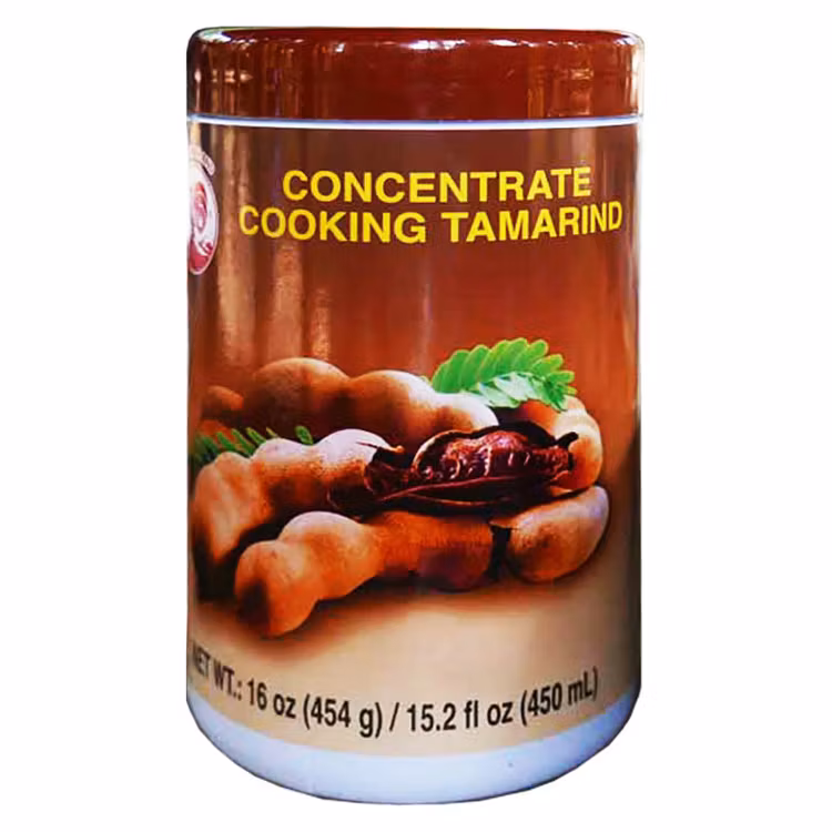 Tamarindkoncentrat från Cock Brand. Tamarindkoncentrat är en tjock mörk pasta som är lättare att använda än tamarindpasta. Du späder ut det tjocka koncentratet med vatten och kan använda i recept som kräver tamarindpasta.