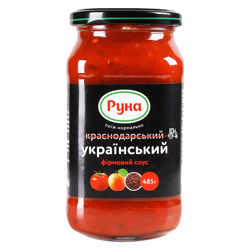 Runa Ukrainsk Tomatsås är en autentisk ukrainsk klassiker med en balanserad smakprofil—lätt syra från äppel‑ och tomatpuré, perfekt kompletterad med en aning sötma och kryddighet. En sås med traditionell historia, som förhöjer klassiker som borsjtj (rödbetssoppa) och holubtsi (kåldolmar), och passar även utmärkt till kött eller grönsaker.