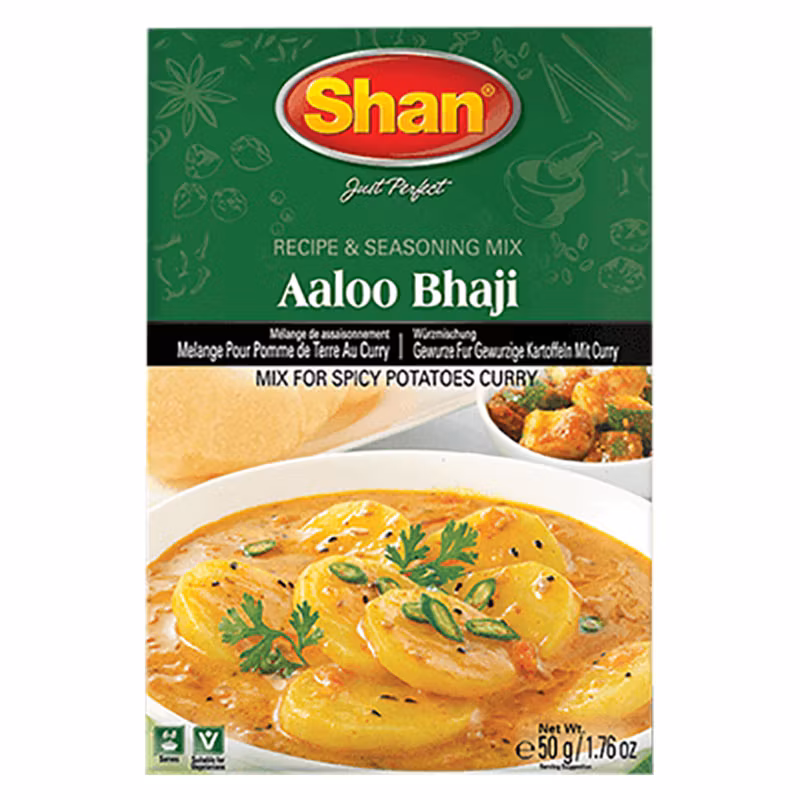 Shan Aaloo Bhaji Mix är en kryddmix som används för att tillaga Aaloo Bhaji, en klassisk indisk potatisrätt. Aaloo Bhaji, även känd som Aloo Sabzi eller Aloo Tarkari, är en enkel och smakrik potatisgryta som ofta serveras som en sidorätt eller som ett tillbehör till måltider.