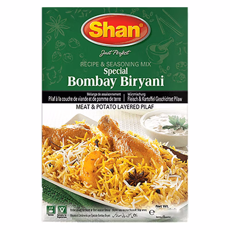 Shan Bombay Biryani Mix är speciellt framtagen för att ge Bombay Biryani den autentiska smaken och kryddprofilen som är typisk för denna rätt. Blandningen innehåller en kombination av olika kryddor och örter för att ge den karakteristiska smaken av Bombay Biryani.