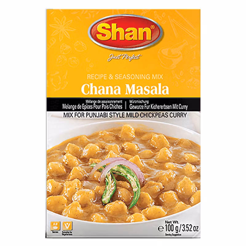 Shan Chana Masala innehåller en perfekt balanserad blandning av kryddor som ger grytan dess distinkta smak och vackra färg. Kryddblandningen kan innehålla ingredienser som tomat, chili, koriander, spiskummin, ingefära, vitlök och andra aromatiska kryddor för att ge grytan dess autentiska smakprofil.