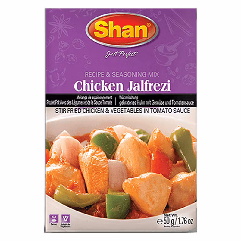 Shan Chicken Jalfrezi Mix är en kryddblandning som hjälper dig att skapa den autentiska smaken av Chicken Jalfrezi, en populär rätt som kombinerar influenser från indisk och kinesisk matlagning. Jalfrezi är känd för sina wokade kycklingbitar och grönsaker i en smakrik tomatsås.