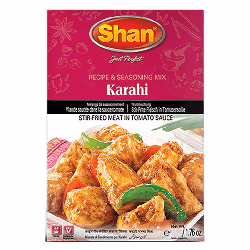Shan Karahi Mix är en kryddmix som är speciellt framtagen för att hjälpa dig att tillaga den autentiska Karahi-rätten hemma. Kryddmixen innehåller en balanserad kombination av kryddor och smaksättare för att ge Karahi sin karakteristiska smak.