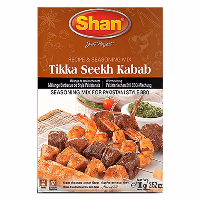 Shan Tikka Seekh Kabab Mix är en kryddmix som är utformad för att ge en komplett och smakrik lösning för grillning av kött, inklusive kyckling, nötkött eller andra köttsorter. Denna kryddmix är speciellt anpassad för att skapa en autentisk pakistansk BBQ-upplevelse.