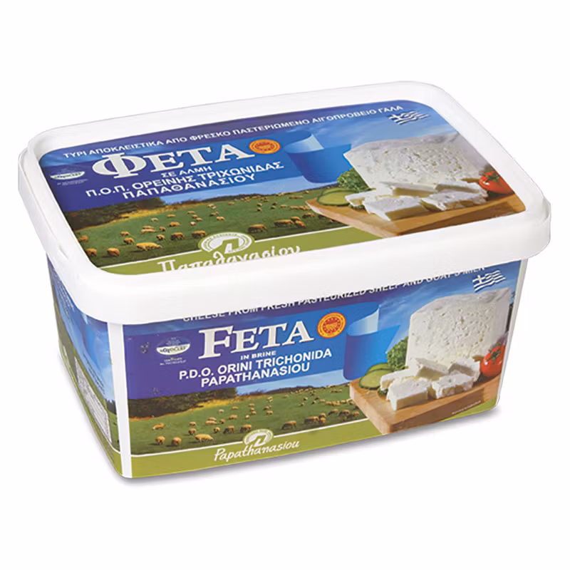 Denna fetaost är tillverkad av noggrant utvalda ingredienser, inklusive mjölk från inhemska får och en liten mängd getmjölk. Den strikta tillverkningsprocessen och traditionella metoder som används av Papathanasiou garanterar en ost av högsta kvalitet. Med en smakprofil som är rik och komplex, erbjuder Papathanasiou Fetaost en perfekt balans av krämighet, saltighet och en subtil pikant eftersmak, vilket gör den till en favorit bland ostkännare.