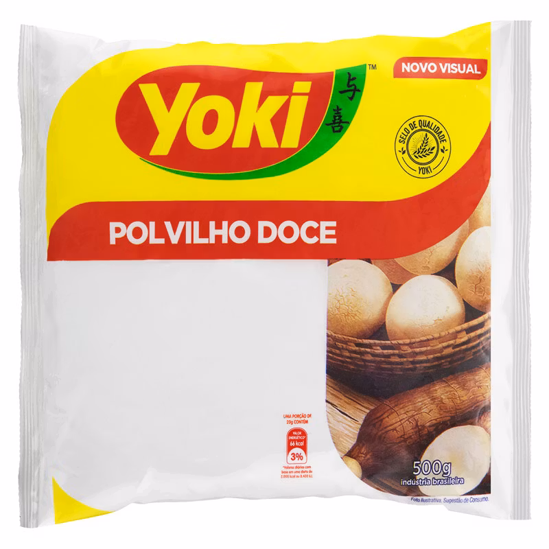 Yoki Polvilho Doce är tillverkad av kassava och är en populär produkt inom brasiliansk matlagning. Den har en naturlig sötma och används ofta i recept för att ge en mjuk och luftig konsistens åt bröd, kakor, pajskal och mycket mer.